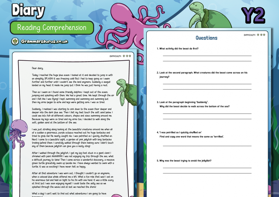 Year 2 Reading Comprehension Diary Grammarsaurus
